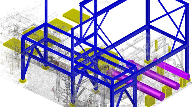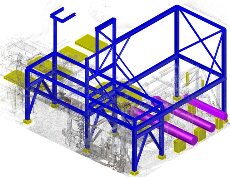 As-built drawing (3D scanning and modeling) for a plant in the petrochemical industry.