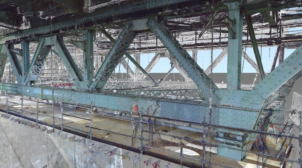 Difficult-to-access locations of surveys, overhead job on footbridges, vast amount of plates and bolts to verifiy.
