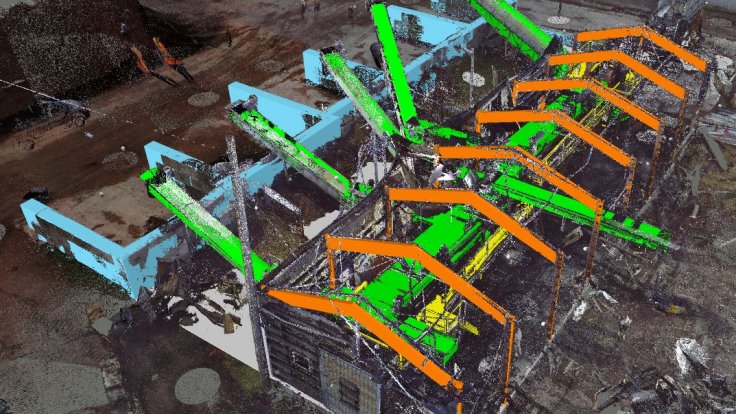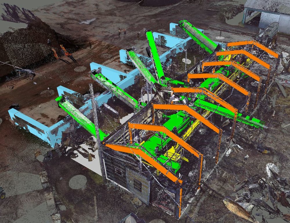 After a fire incident, our client wanted a 3D model of the remaining installations to facilitate the reconstruction. 3D scan is therefore a secure option to survey all the damaged structures.
