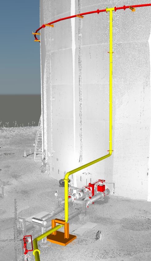 With the point cloud, the piping routing could be validated in the existing environment. Interferences a therefore detected before installation which will greatly reduce on sit adjustments.