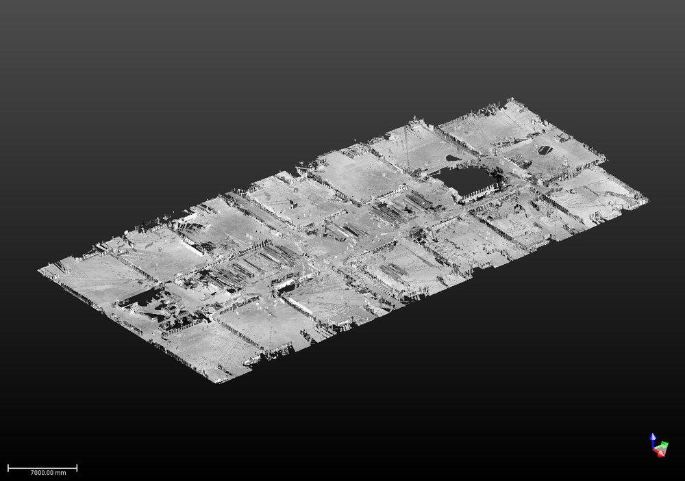 Relevé 3D et TQC de l’ensemble du bloc opératoire en fonction dans le but d’évaluer les élévations et déformations des planchers.