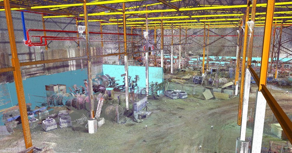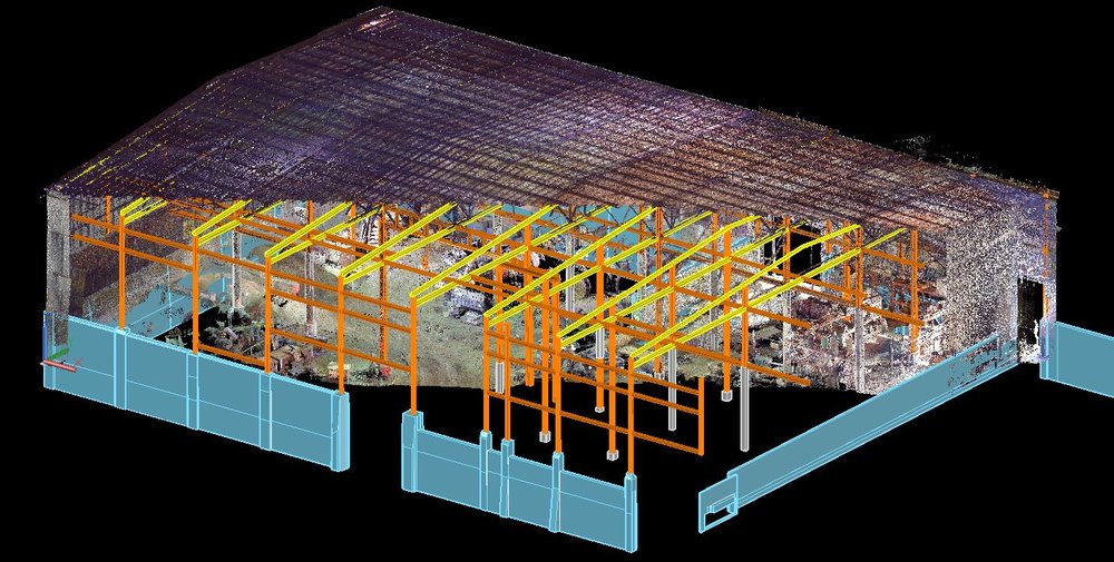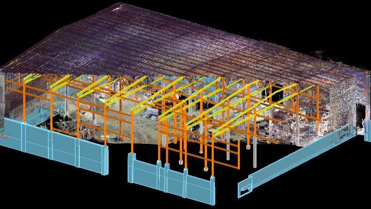 Scan 3D et modélisation de la structure d'un entrepôt pour validation de conformité.