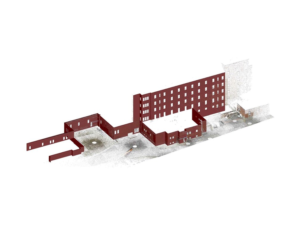 Scan 3D et modélisation des murs d’un édifice hospitalier pour un architecte.